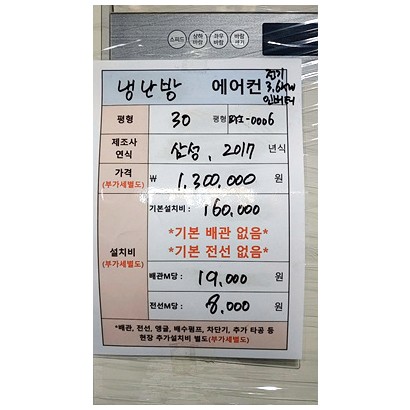30평, 삼성, 2017년, 인버터, 3.6키로, 설치비별도